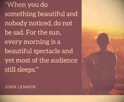 Når du gjør noe vakkert og ingen la merke til det, ikke vær trist. For solen er hver morgen et vakkert opptog, og likevel sover de fleste av publikum fortsatt. - John Lennon