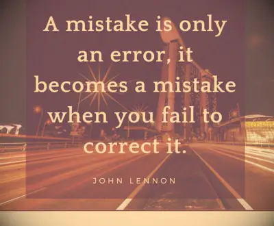 En feil er bare en feil, det blir en feil når du ikke klarer å rette den opp. - John Lennon